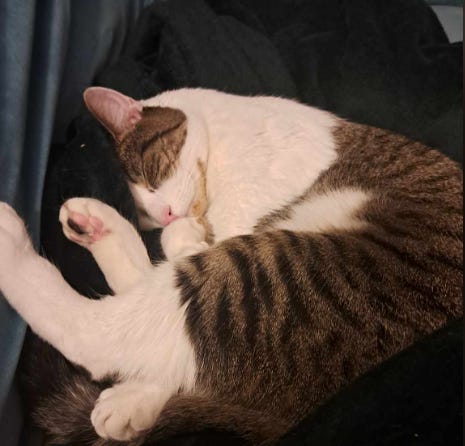 Jinx before my sudden movements wake her up. Who naps better than cats???