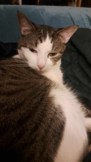 Been a minute since I’ve posted a Jinx pic here. Sometimes Jinx will lay right by my legs and if I make any sudden movement she gives me this attitude-drenched look. My bad, Jinx. I should know better.